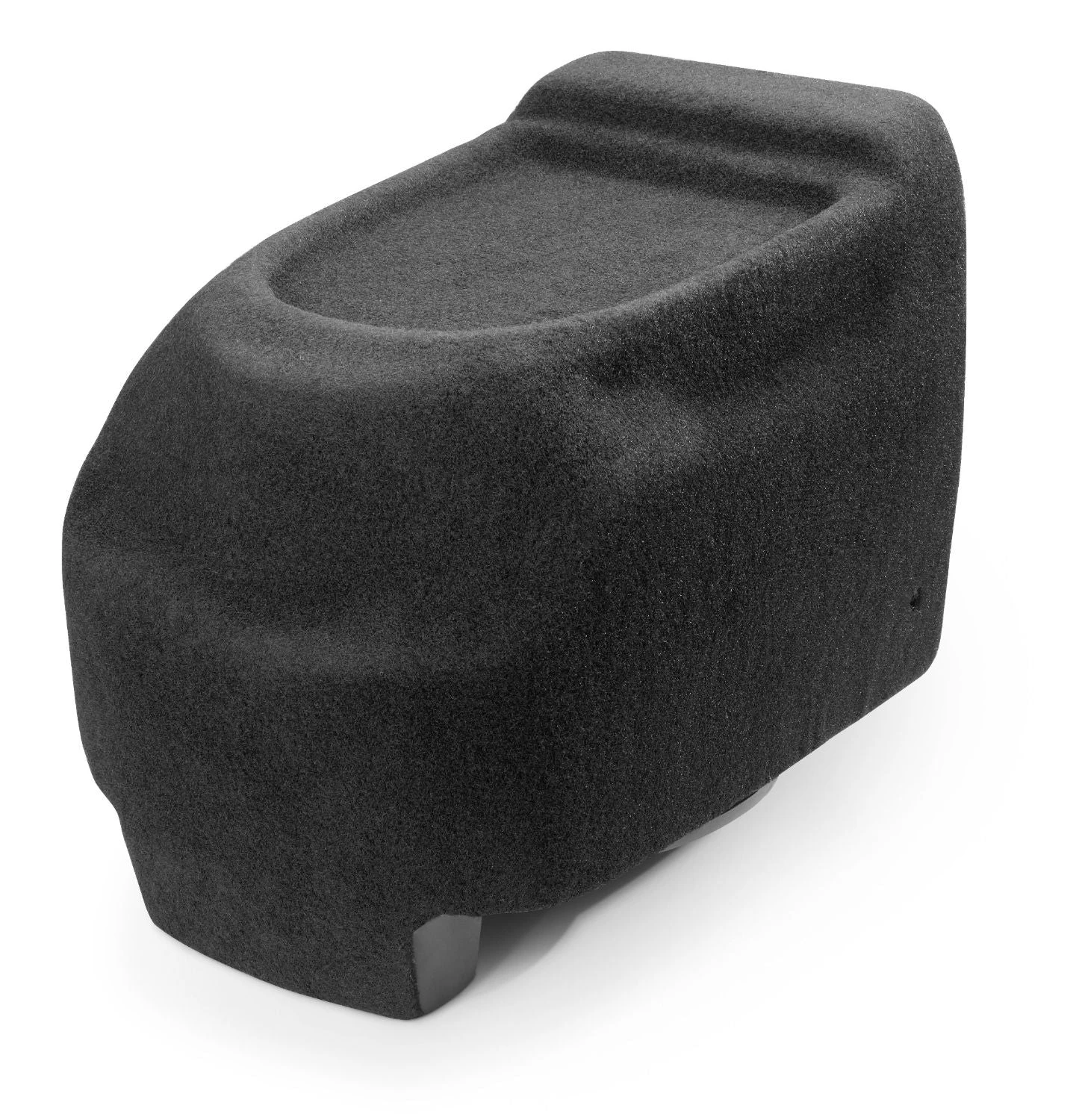 The Hard Data: Contains one 12W3v3-2 in a down-firing sealed enclosure. 500 watt power handling. Wired for 2 ohm mono. Stealthbox® installs inside rear factory center console and fires down into the floor. Cup holders are not affected. Console storage is significantly reduced. The factory console is not supplied with the Stealthbox®. Permanent modification of the inner-console is necessary. Will not fit in trucks with rear split bench seats. Will not fit ’03-Up Lincoln Navigator.
